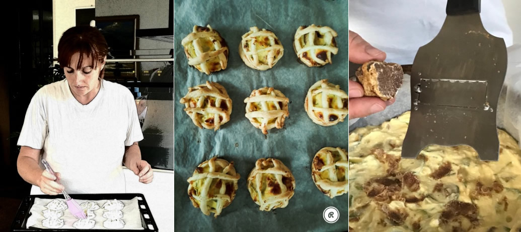 From October to December it is the exclusive moment of the white truffle, we take advantage of the occasion and add to our salty corner of the small ricotta puff pastry with this gray diamond, or a very simple oven-baked omelette embellished by its scales, we all with beautiful handwritten tiles and we offer the exclusive of the day to our guests, even those who will not love the truffle will remain with the memory of what has been offered.
